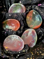 Polished ocean jasper offering bowls in shades burgundy, red, and black. Each bowl is roughly 8-10cm and can be a great addition to travel alters.